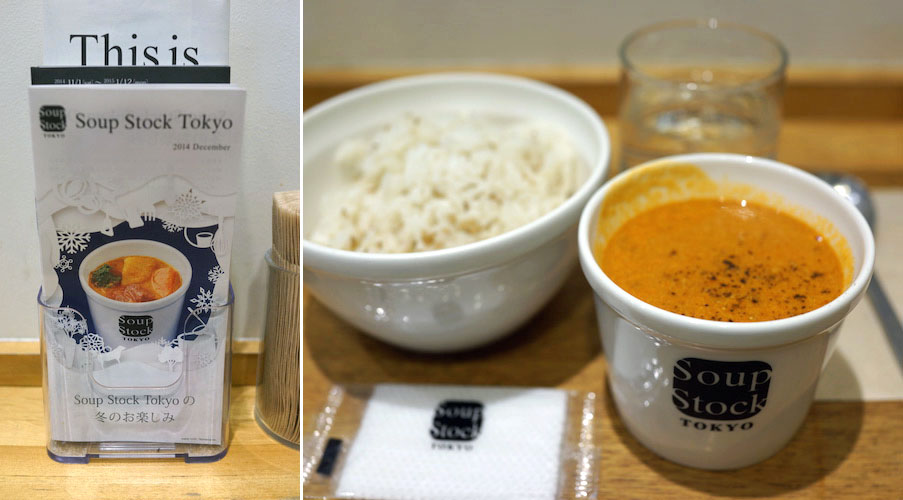 スープストックで朝のお腹をあたためましょうと、ビスクをたのむ。