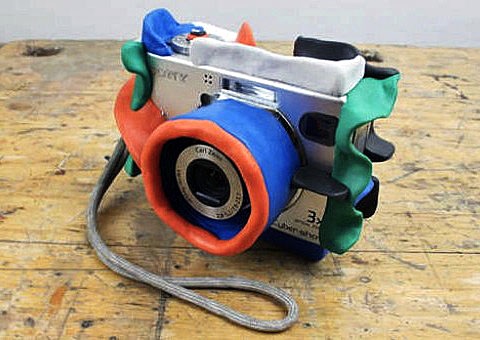 上下をくるむ革のパーツが伸縮性のあるベルトでひとつに繋がっている。