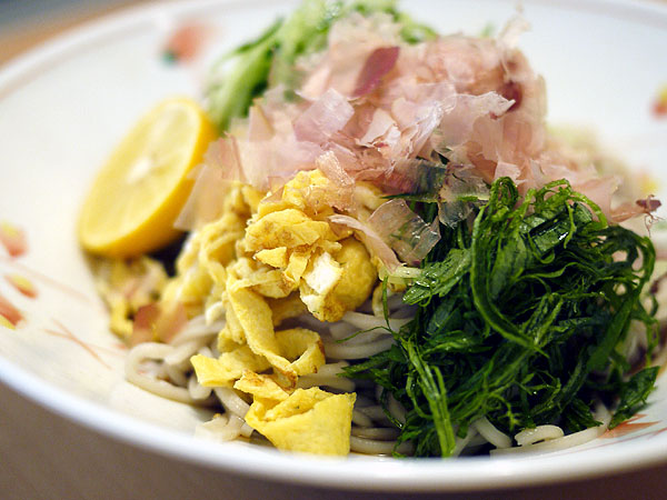 麺の量より具材の方がタップリで、中でもザクっと大きめに切ったキュウリがコツコツザクザク、奥歯にたのしい。