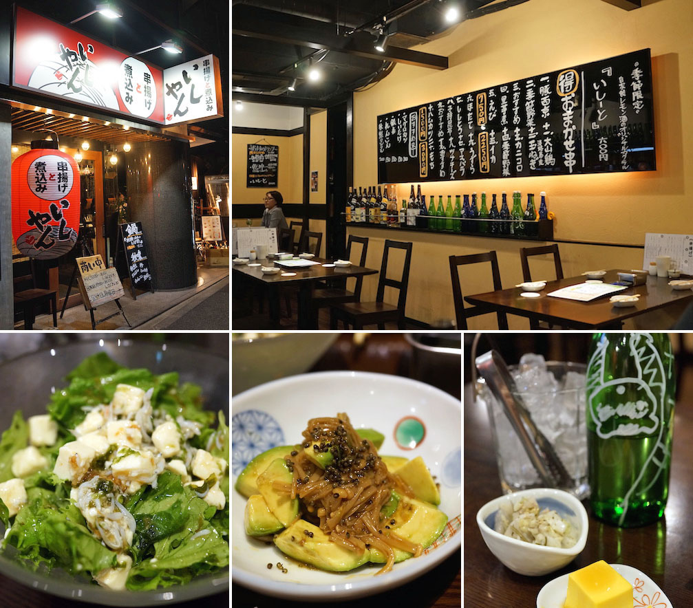 串かつのおいしい専門店ではあるのだけれど、気の利いた酒の肴も用意する。熟れたアボカドに自家製エノキのわさび和え。崩した豆腐にしらすをまぜて、それそのものをドレッシングのようにしたサラダも旨い。
